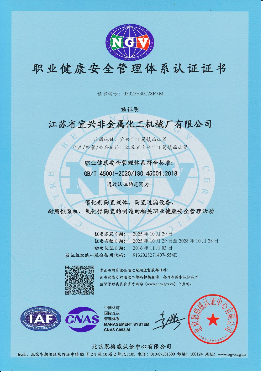 职业健康安全管理体系证书-中文
